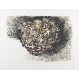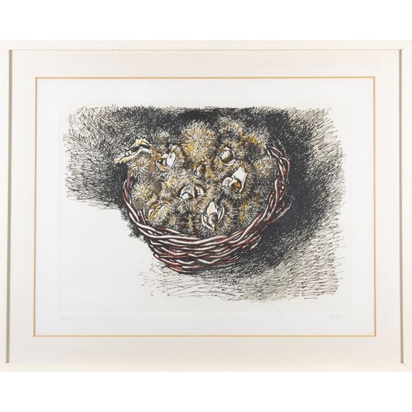 "Basket with chestnuts", color lithography, eg. 26/75, signed at the bottom left, within frame