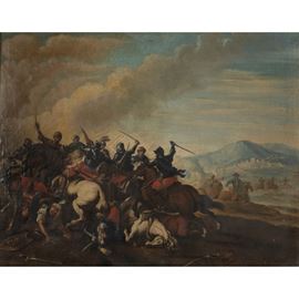 51.5x64.5 cm."Battle between Christians and Ottomans", oil on canvas, framed