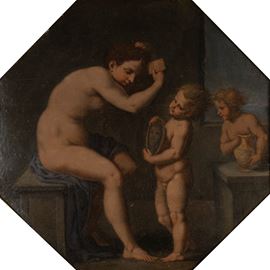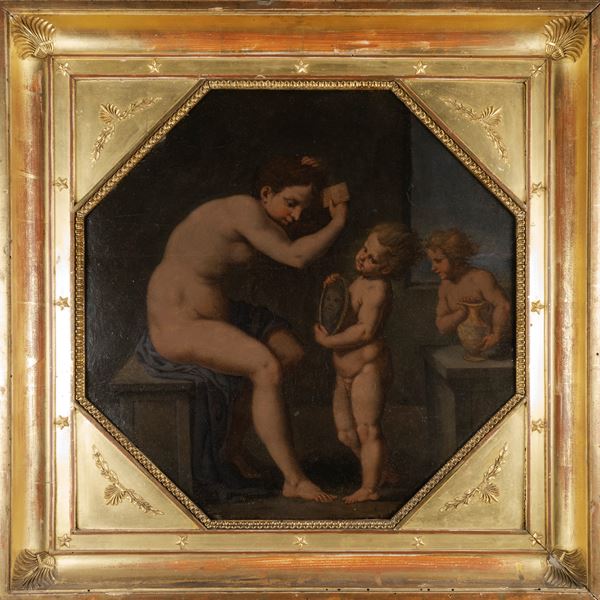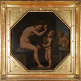 46.5x48 cm."Toeletta di Venere", oil on panel, within frame.