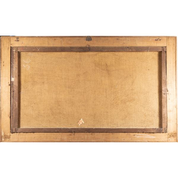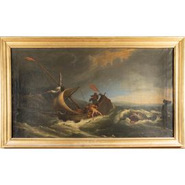 76x137.5 cm."Jonah and the whale", oil on canvas, framed