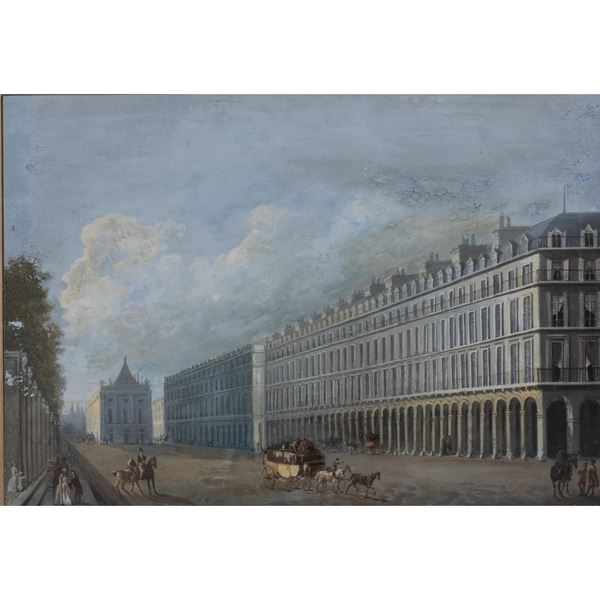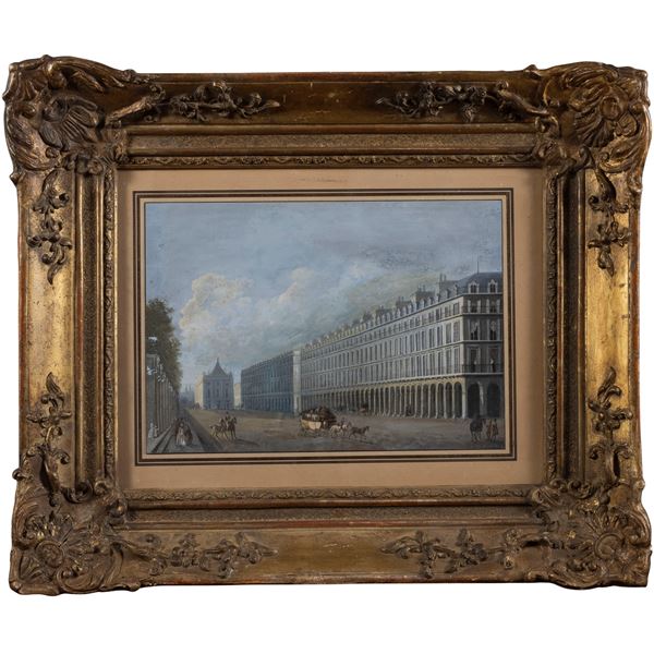 18.5x26.5 cm."Rue de Rivoli, Paris", 1860, oil on paper, signed and dated lower left, framed
