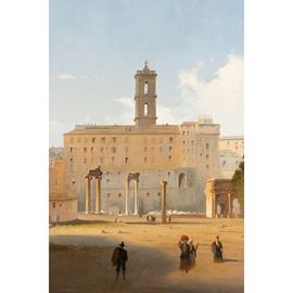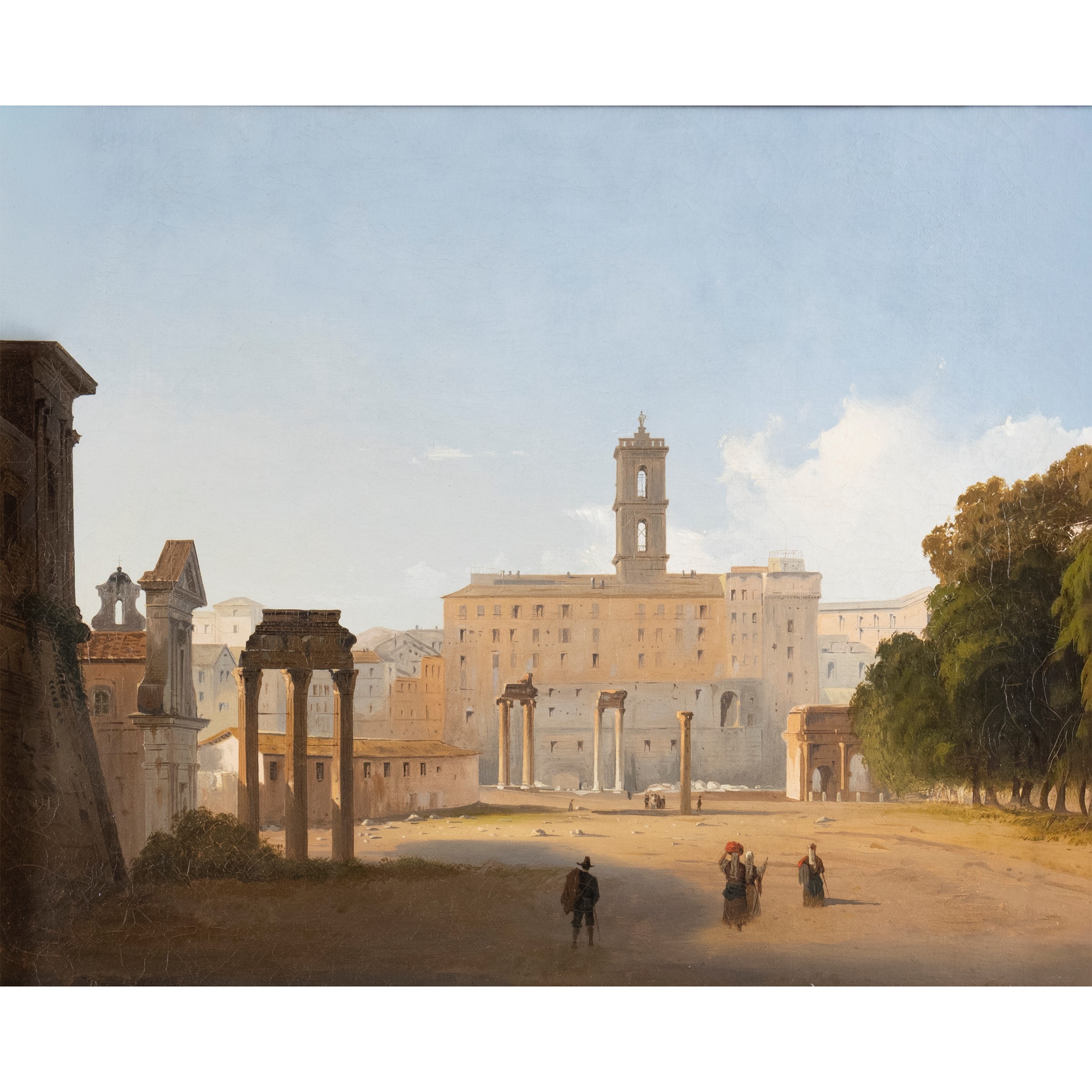 37.9x45 cm."View of the Forum with Campo Vaccino", oil on canvas, framed. The painting is accompanied by a critical sheet by Dr. Annalisa Scarpa.