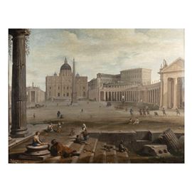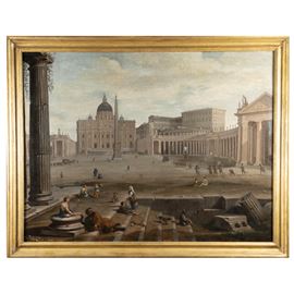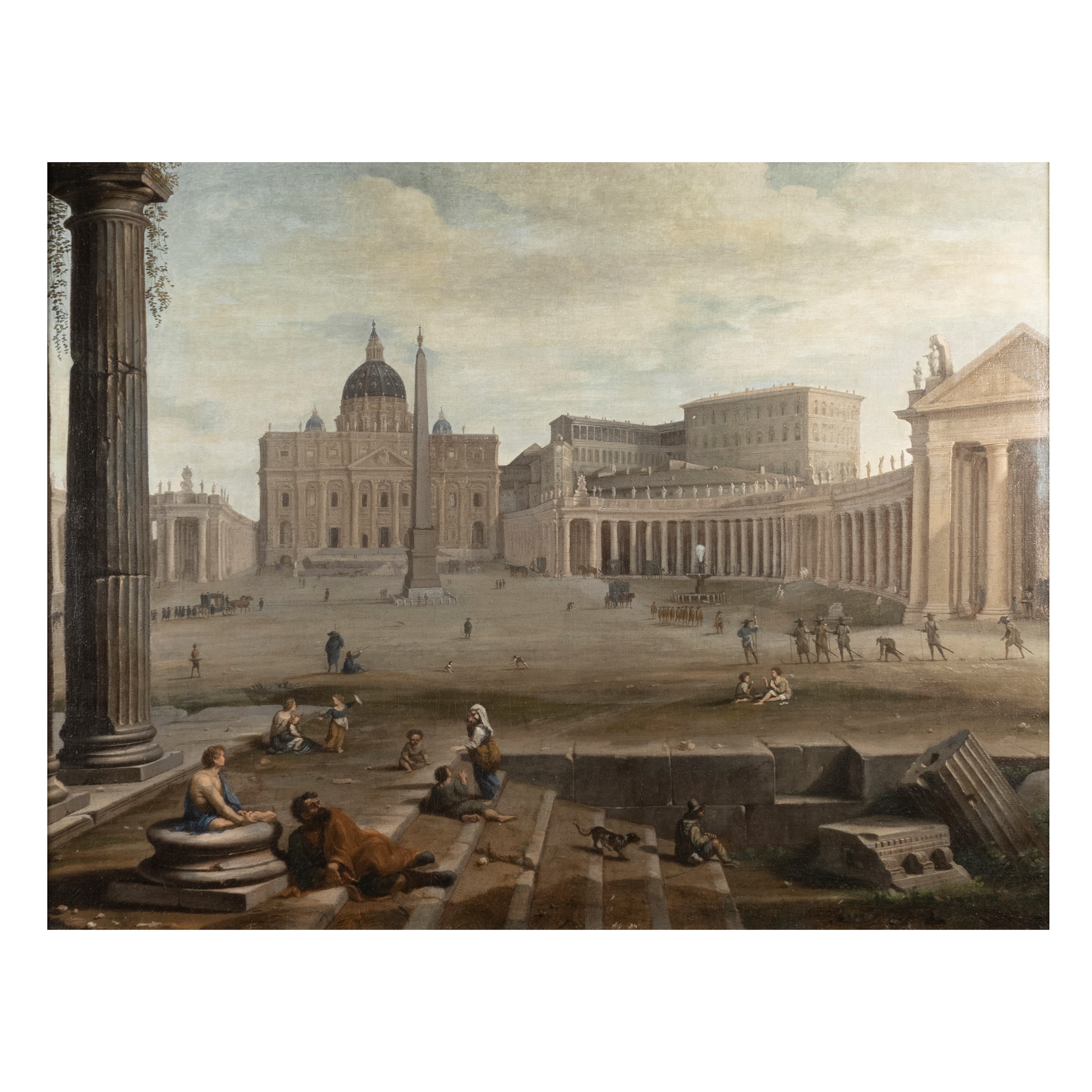 68x88 cm."View of Piazza Colonna, Rome", oil on canvas, within frame.