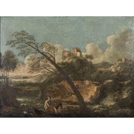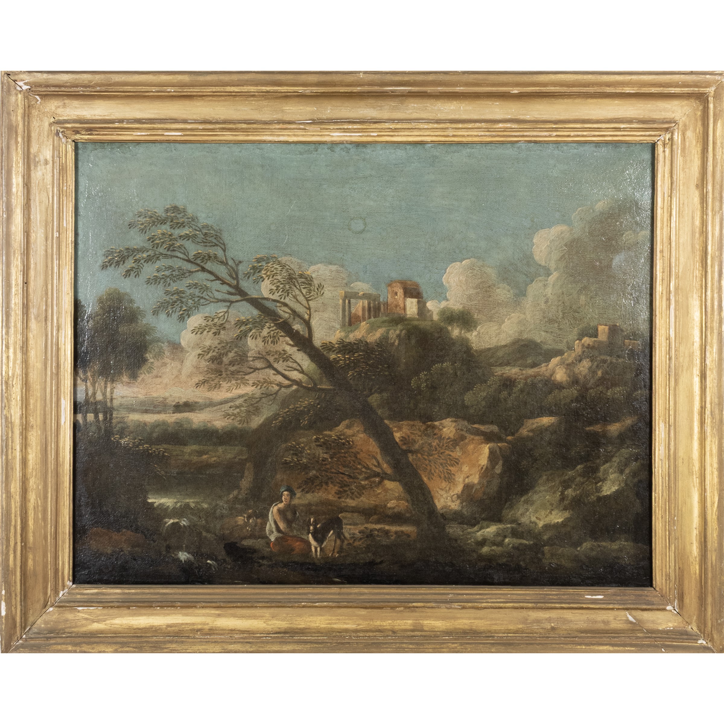 50x65 cm."Landscape with ruins", oil on canvas, framed