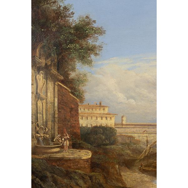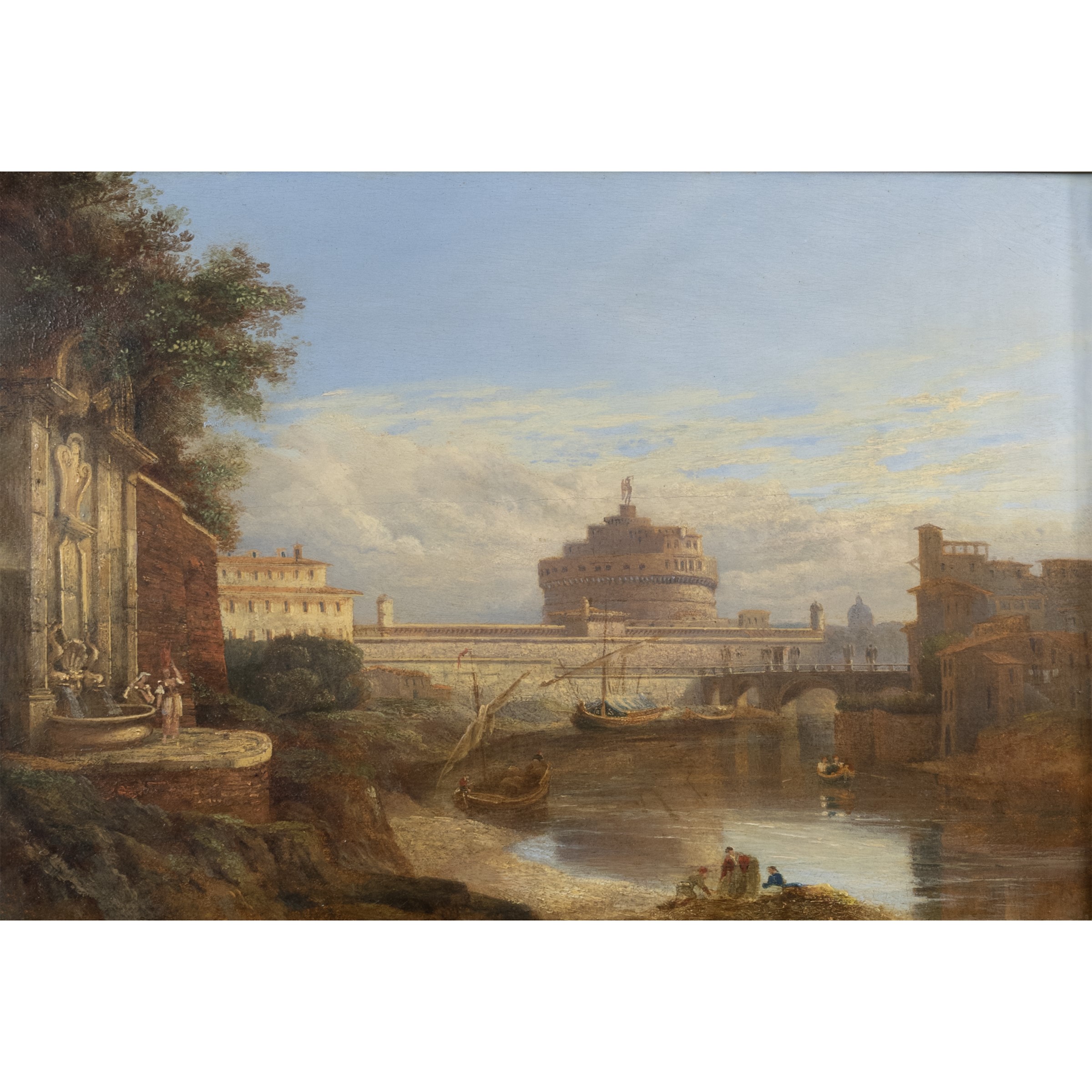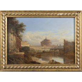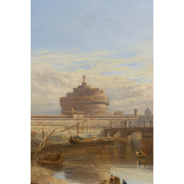24x34.5 cm."View of Rome with Castel Sant'Angelo and the Tiber", oil on panel, within a frame