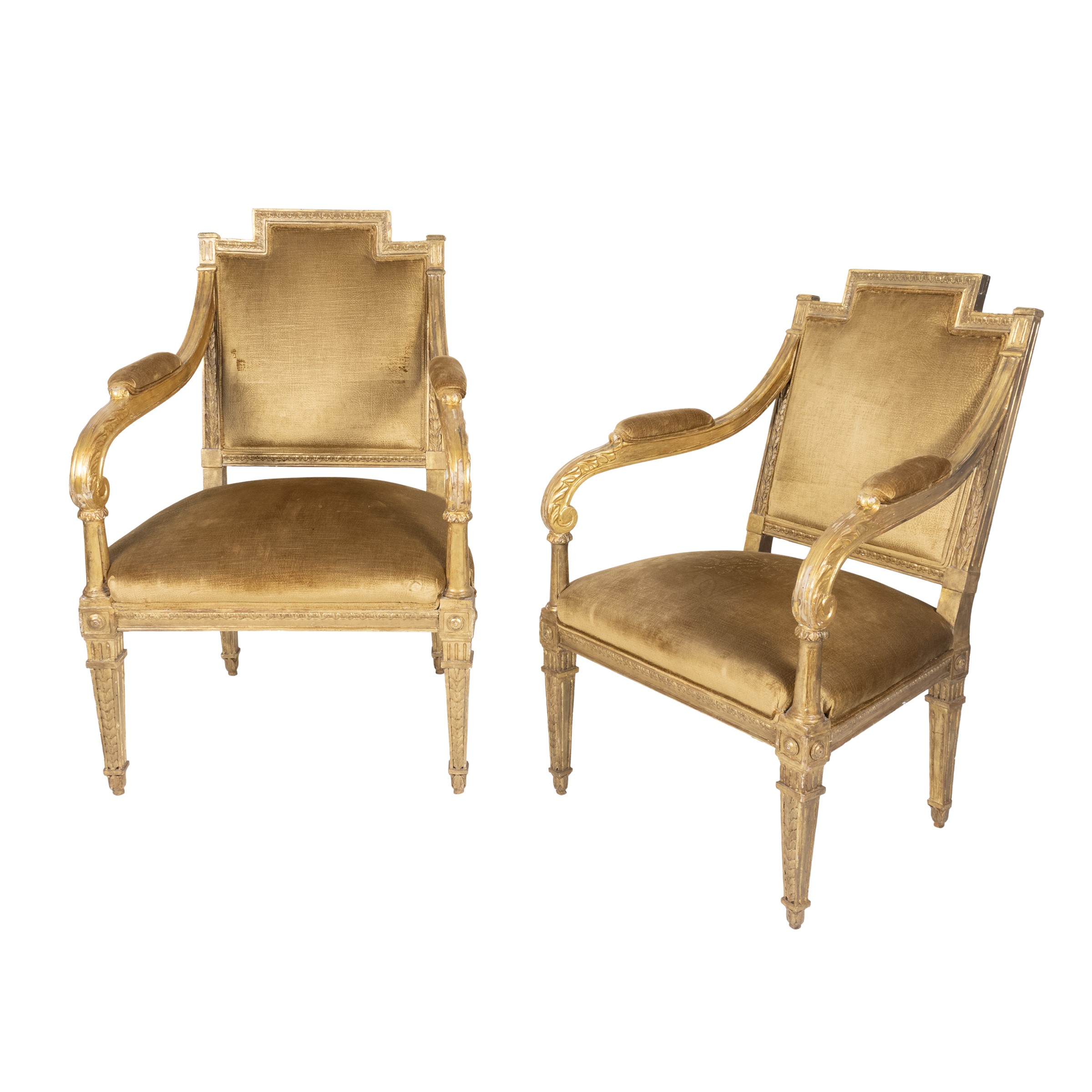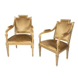 Pair of gilded and carved wooden armchairs