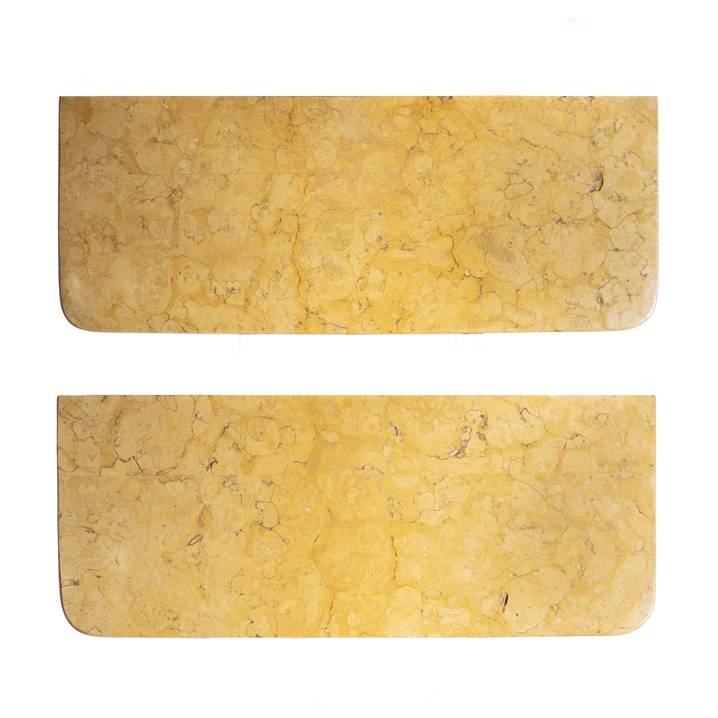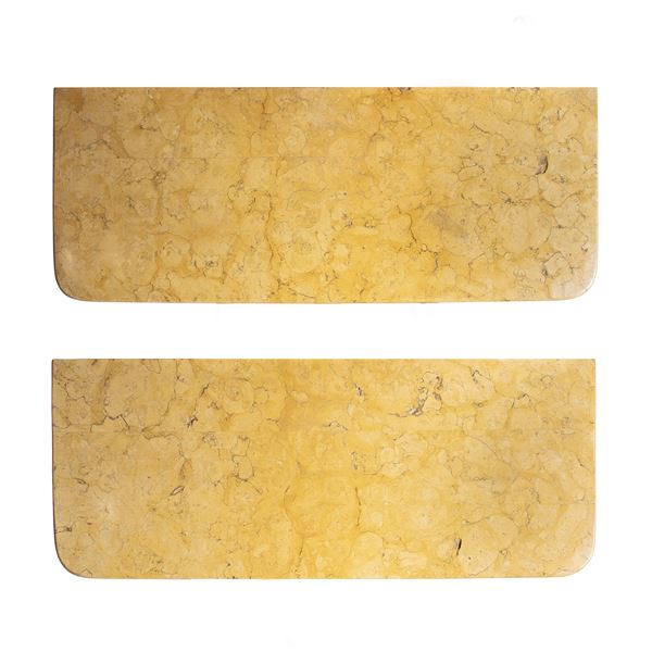 93x115x44.5 cm.rectangular top in yellow marble and retractable front drawer, resting on supports carved with a volute and terminals with feral legs, shaped lower shelf, wears and losses