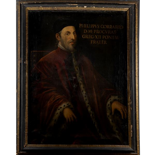 112x85 cm."Portrait of Filippo Correr", oil on canvas, framed