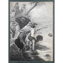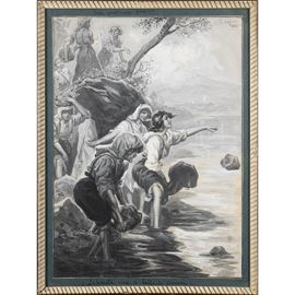 38x27.5 cm."Le peccata mea a bale a sciume", early 20th century, mixed media on paper, signed upper right, titled bottom centre, within frame