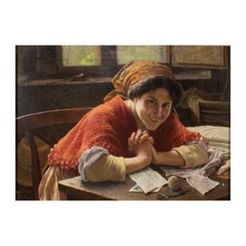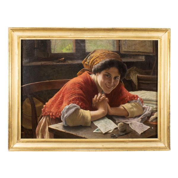 "La buona novella", oil on canvas, signed at the bottom left, within frame