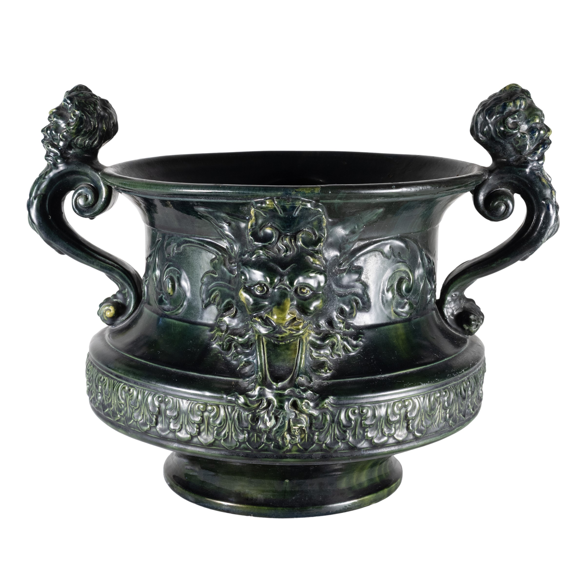 Copper green majolica planter