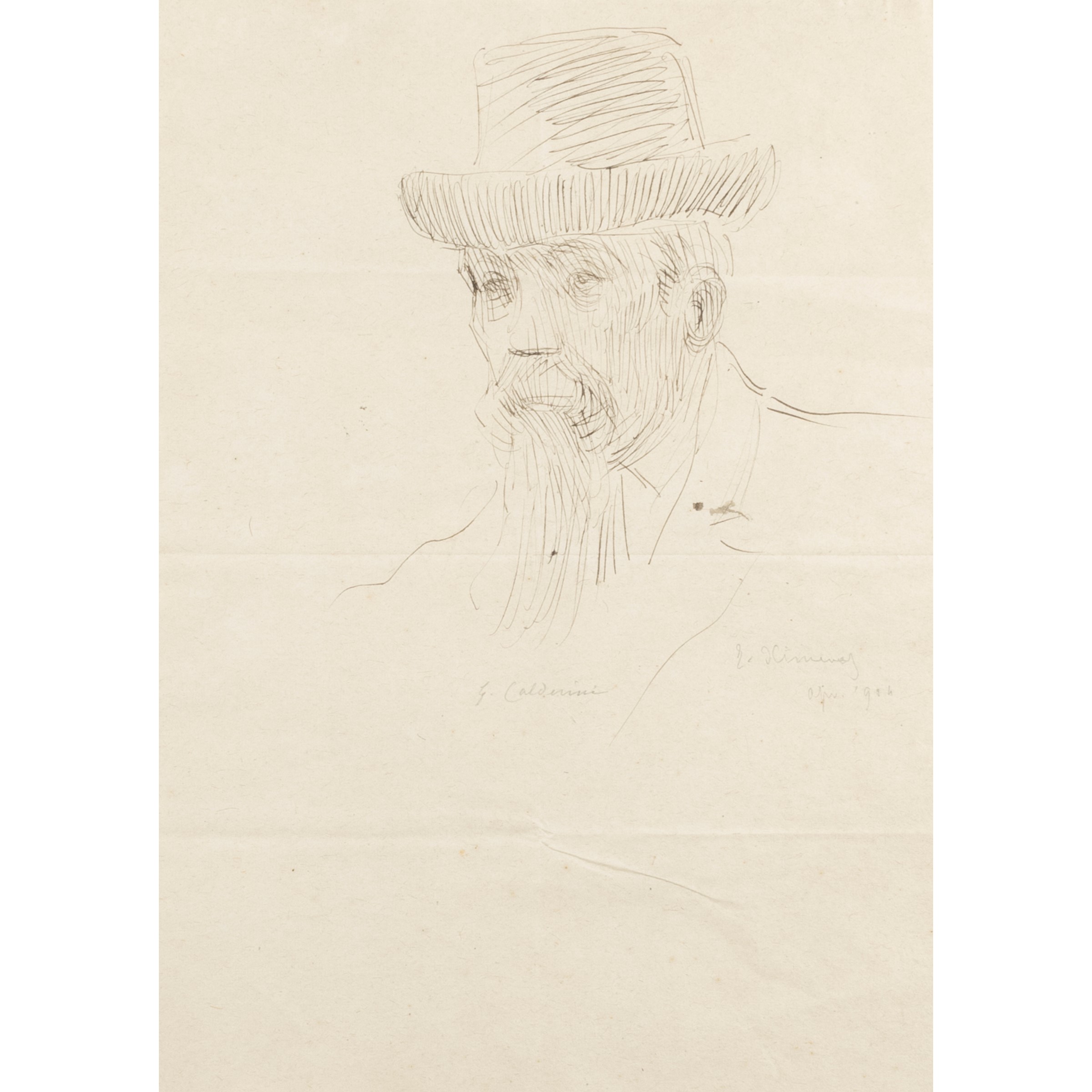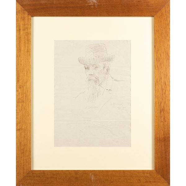 26x19 cm."Portrait of Giacomo Calderini", 1904, Indian ink on paper, signed and dated lower right, within frame