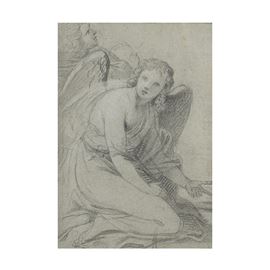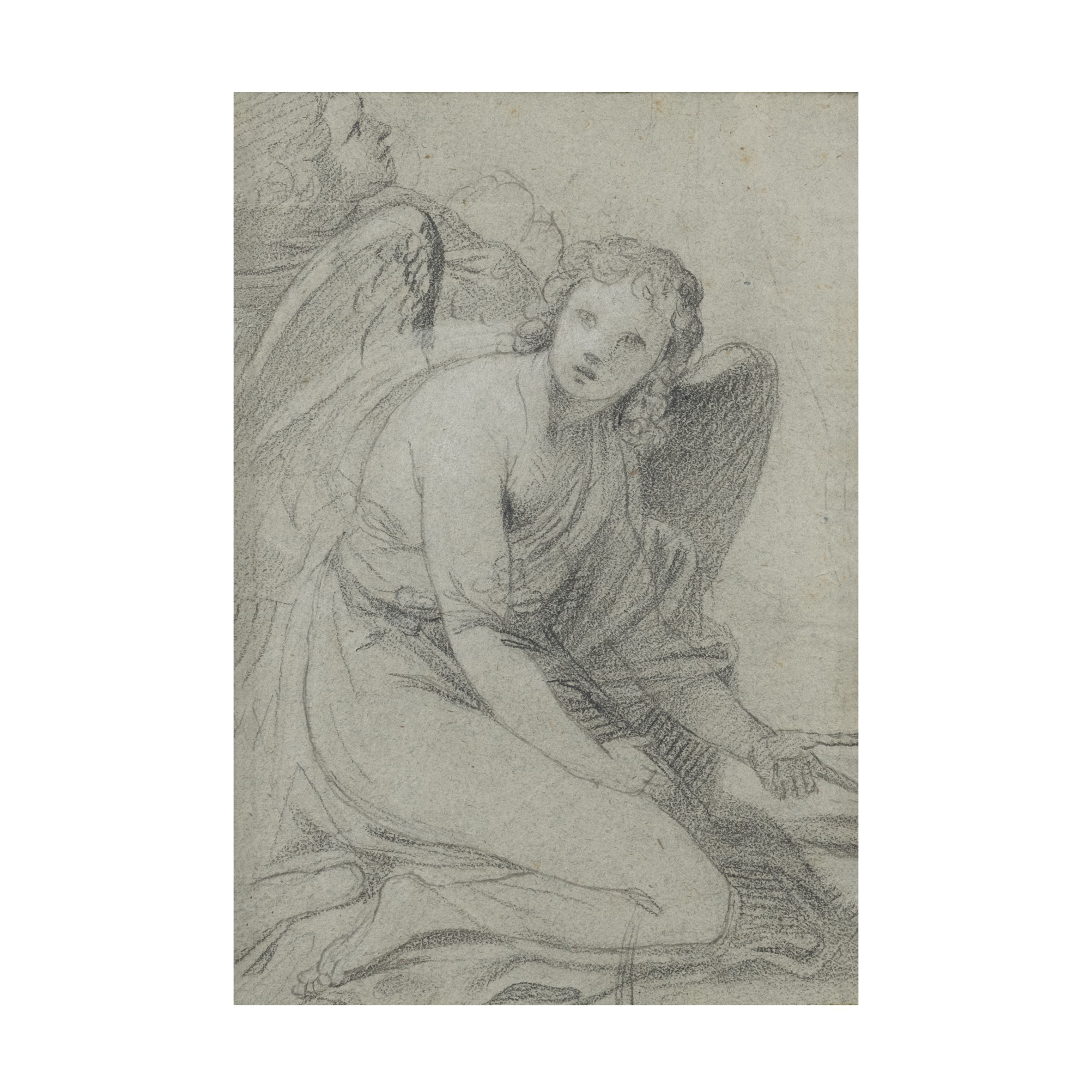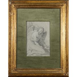 23x15 cm."Angelo inginocchiato", pencil on paper, within a frame