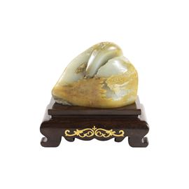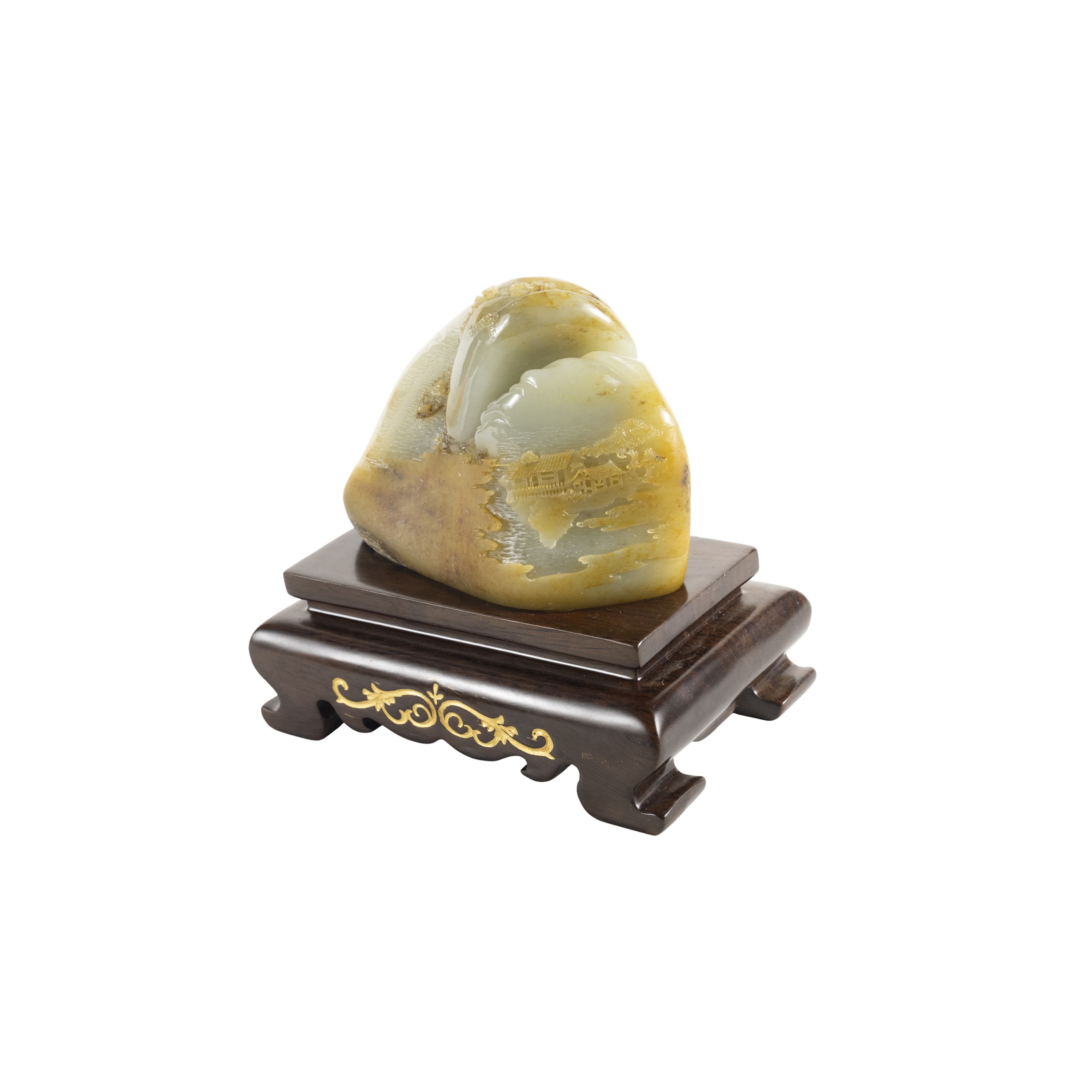 9x11x5.5 cm.with landscape in relief, resting on a wooden base