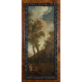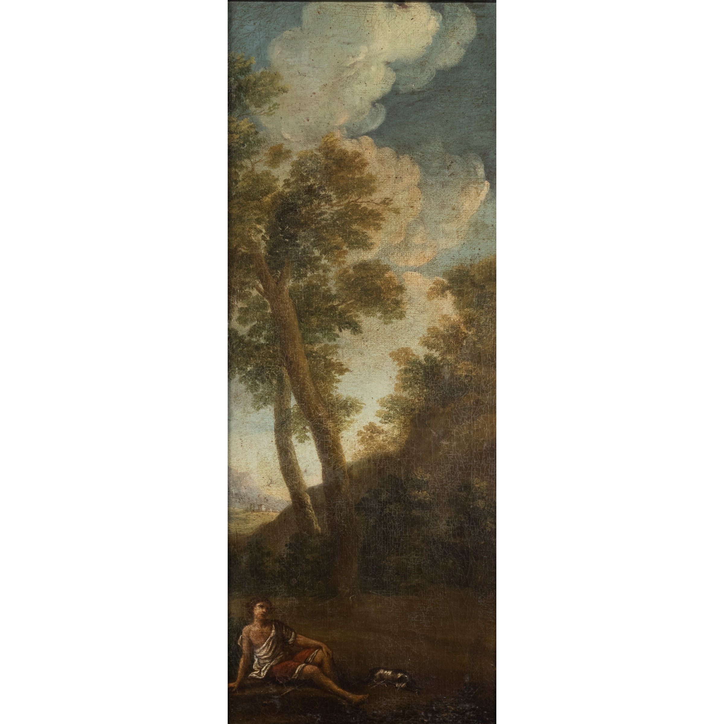65x25 cm."Landscape with figure", oil on canvas, framed