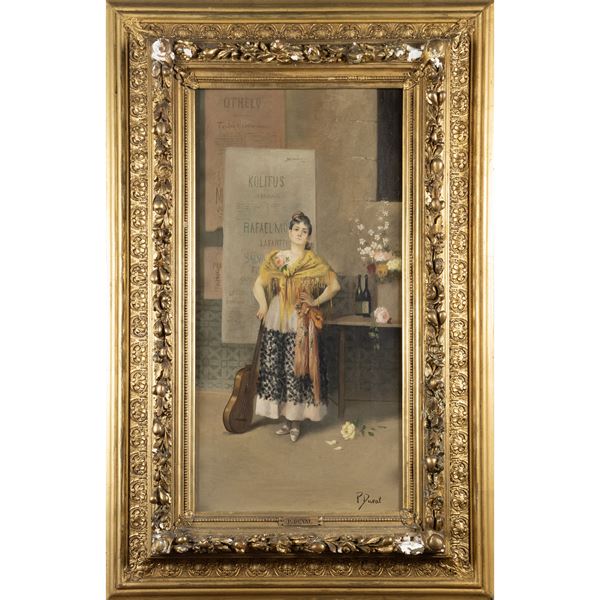 53x27 cm."Gitana", oil on canvas, signed lower right, within frame