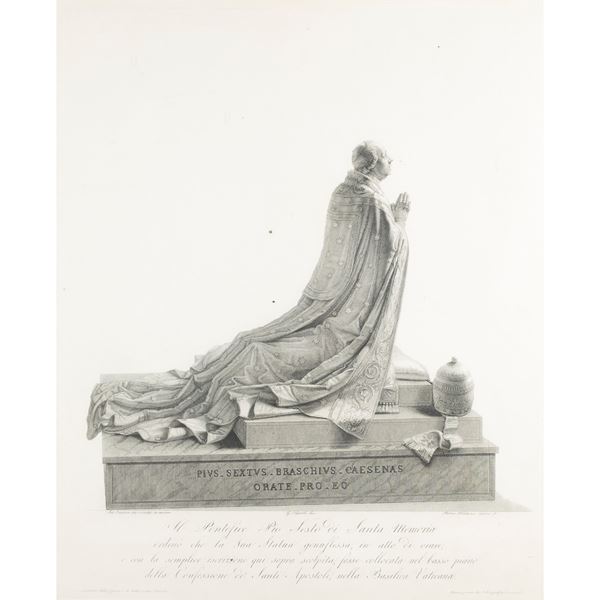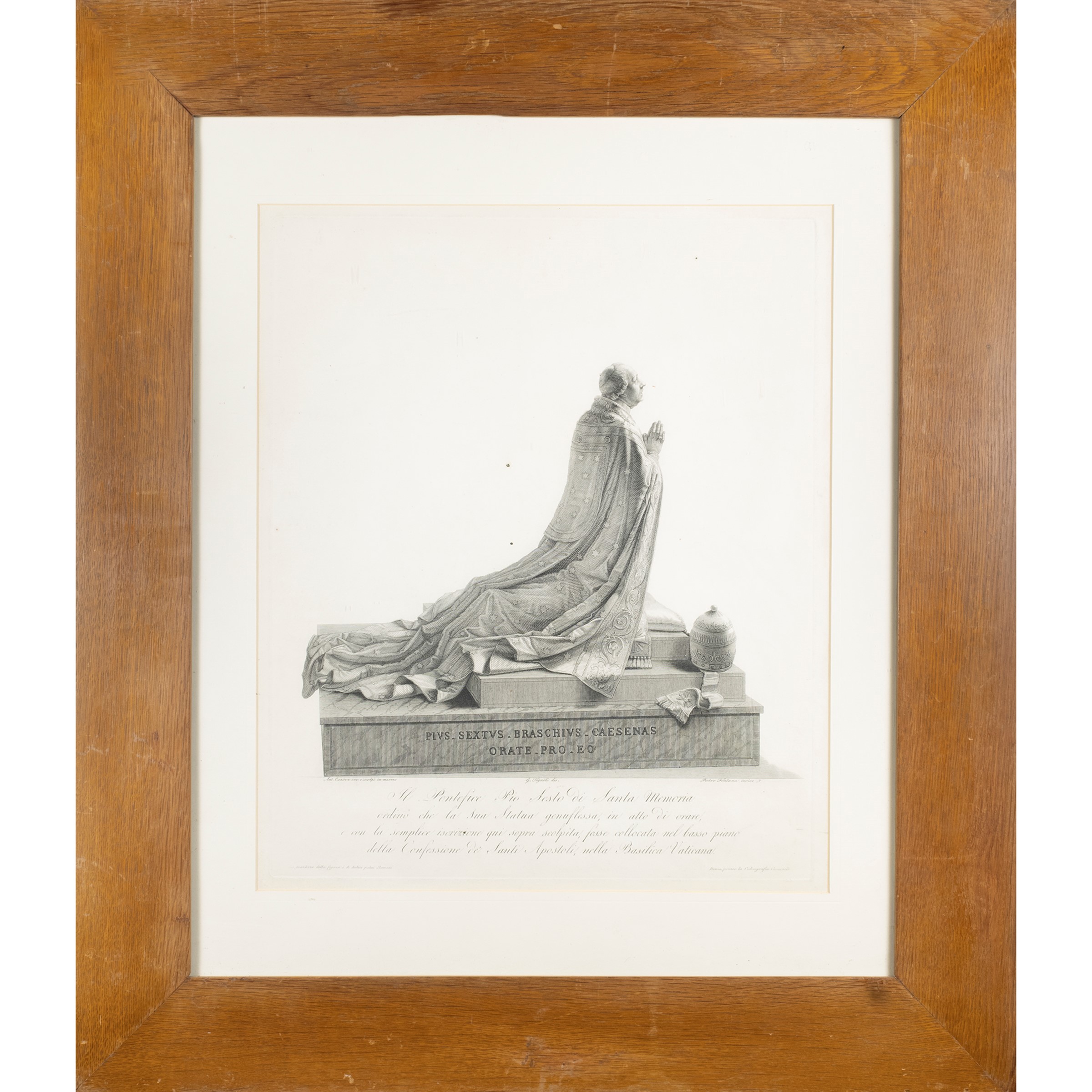 53x44 cm."Pius IV praying, sculpture by Antonio Canova", 19th-20th century, etching, designer Giovanni Tognoli (1786-1862), Rome, at the Chalcografia Camerale, within frame