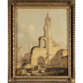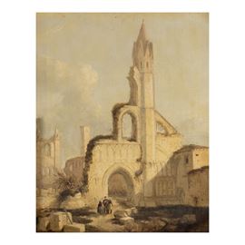 62x51 cm."Ruins of St. Andrew's Cathedral in Scotland", oil on canvas, framed