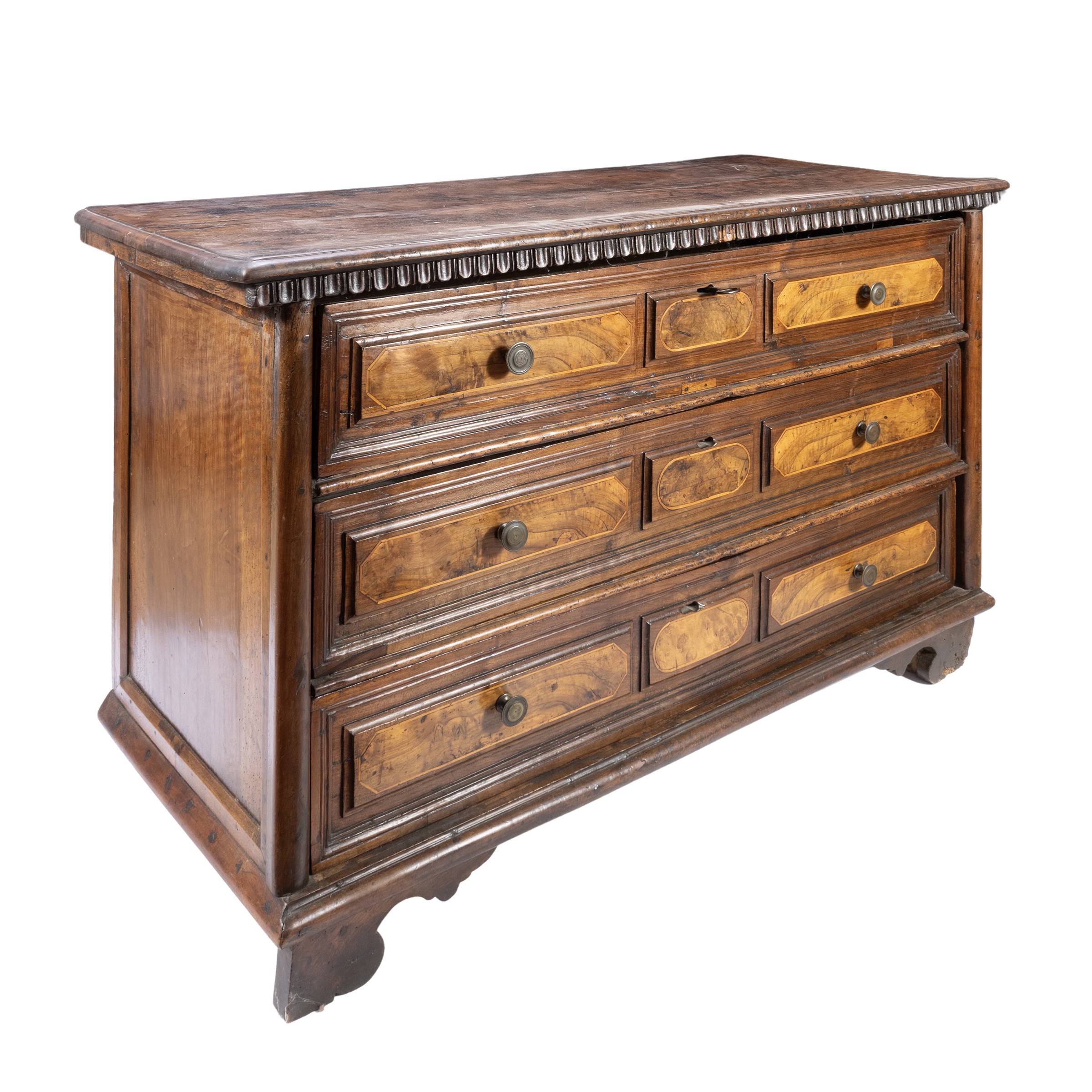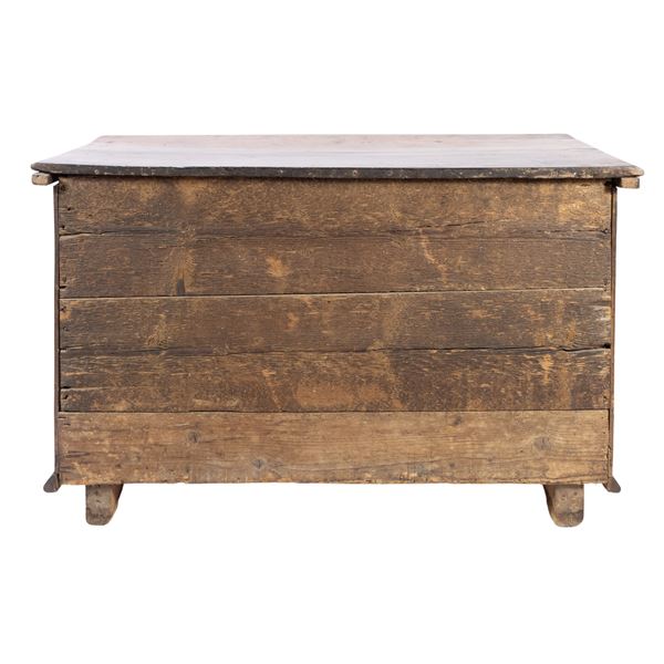 86x140x65 cm.rectangular top, front and three drawers profiled with rectangular reserves, wears