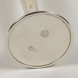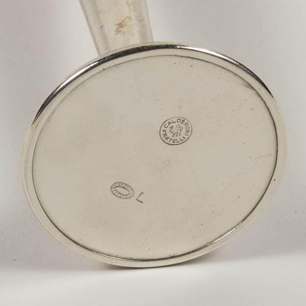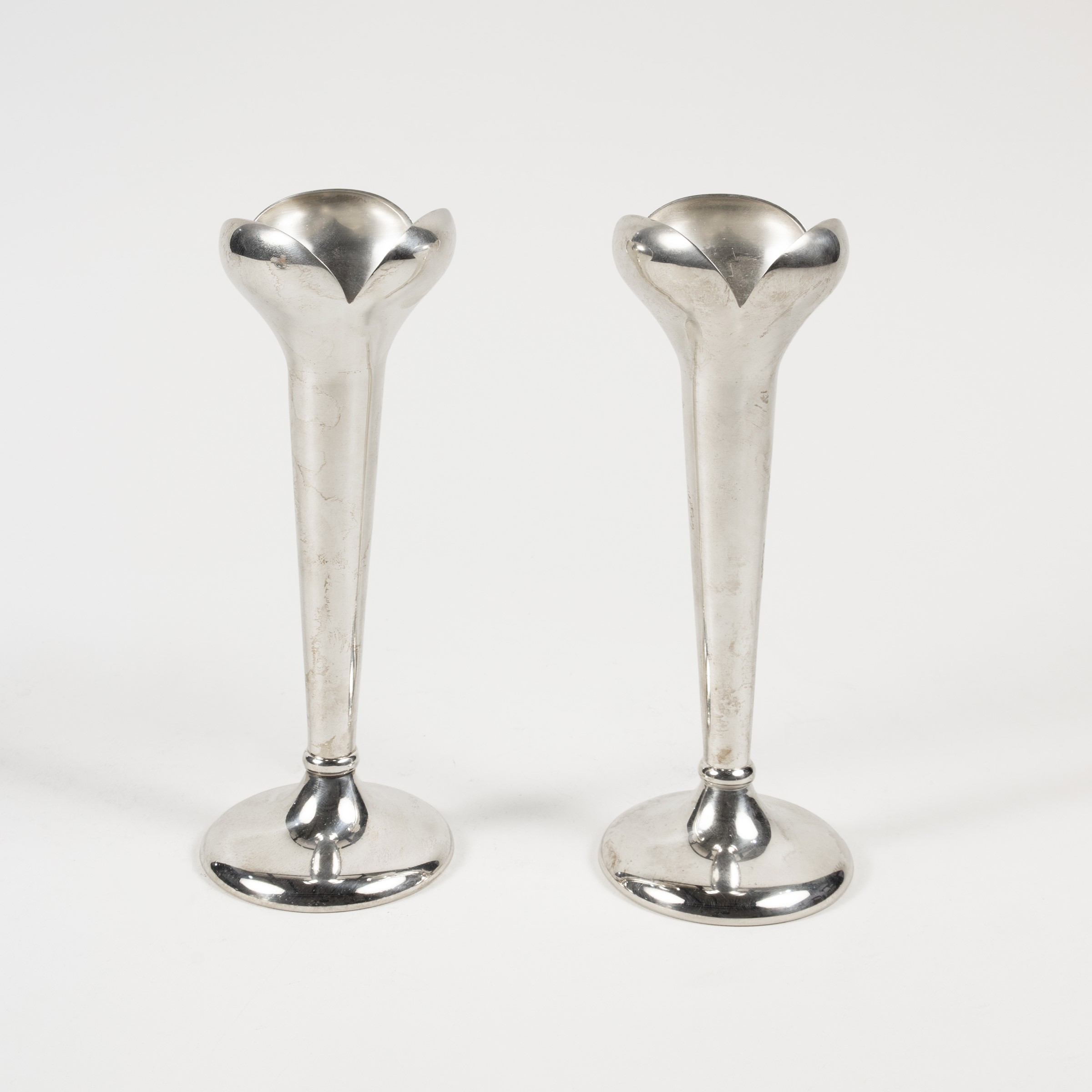 Pair of single-flower vases in silver-plated nickel silver, production mark, slight wears