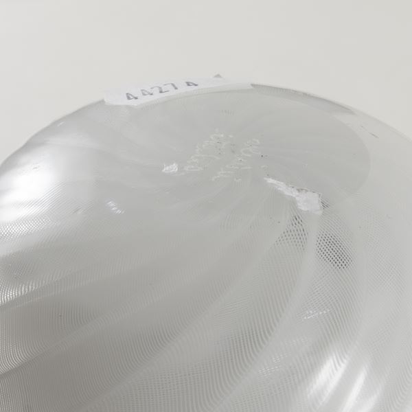 filigree glass bowl, pointed signature, slight wears Reerence Literature: M. Barovier, C. Sonego, Paolo Venini e la sua fornace, Skira, Milano 2016, pag. 278