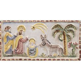 glazed ceramic plaque, signed, slight wears