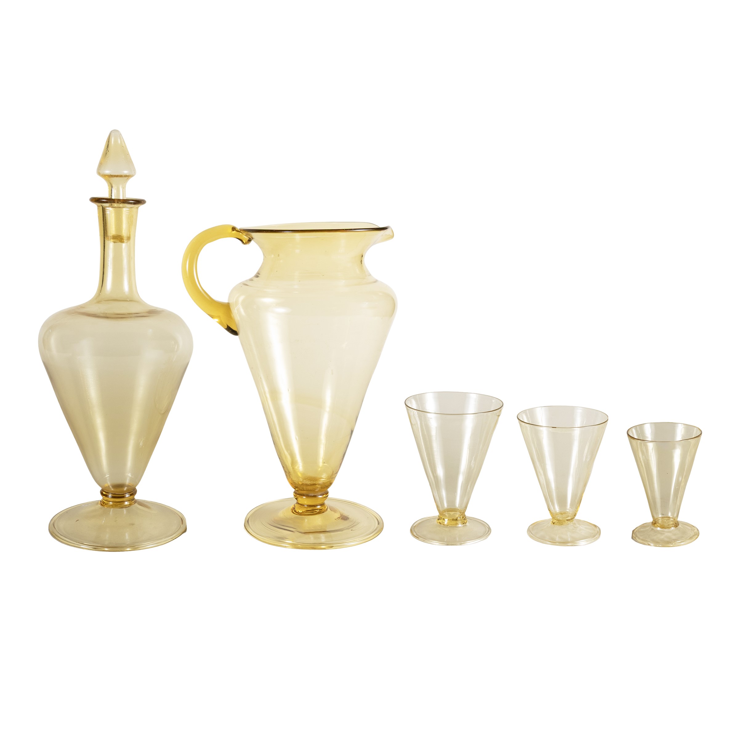 set of colored blown glass glasses, slight defects.