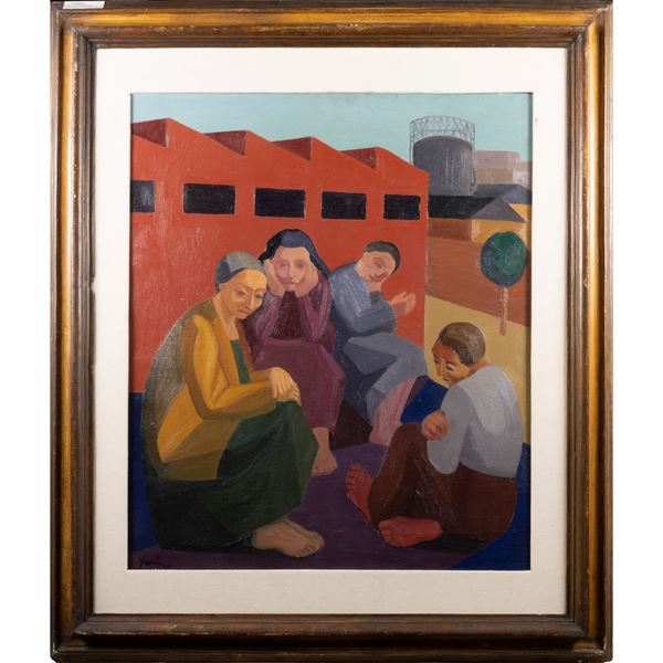 77x65 cm.oil on canvas, signed lower left, signed, dated and titled on the back, within frame