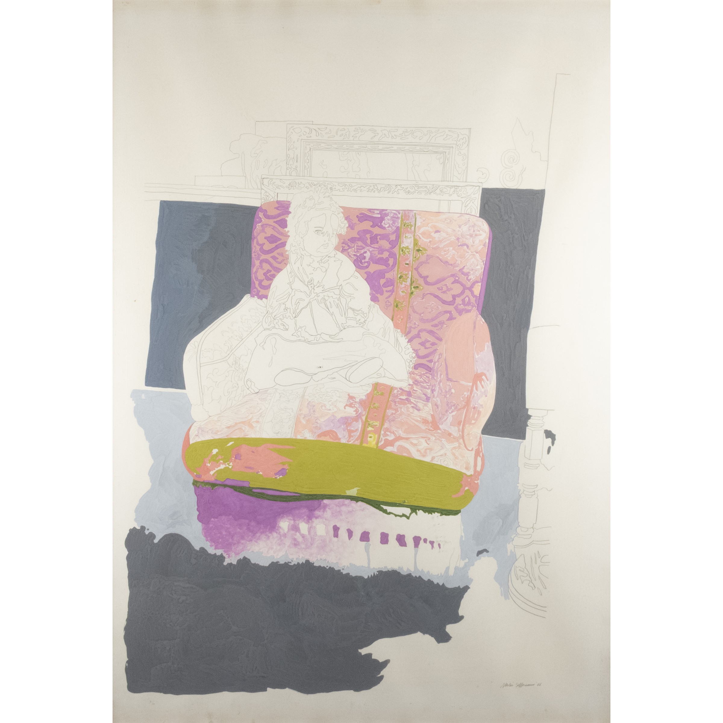 100x70 cm.mixed media on cardboard, signed and dated lower right, within a frame