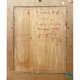 50.5x40.5 cm.cork on board, signed, dated and dedicated on the back, within a frame Inscription on the back: "Al nemico n. 1 Iolas. Roberto Crippa, Gaggiano 1960"