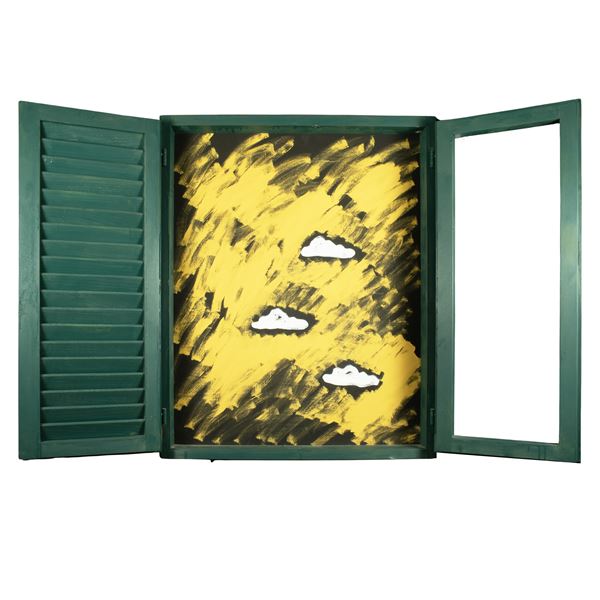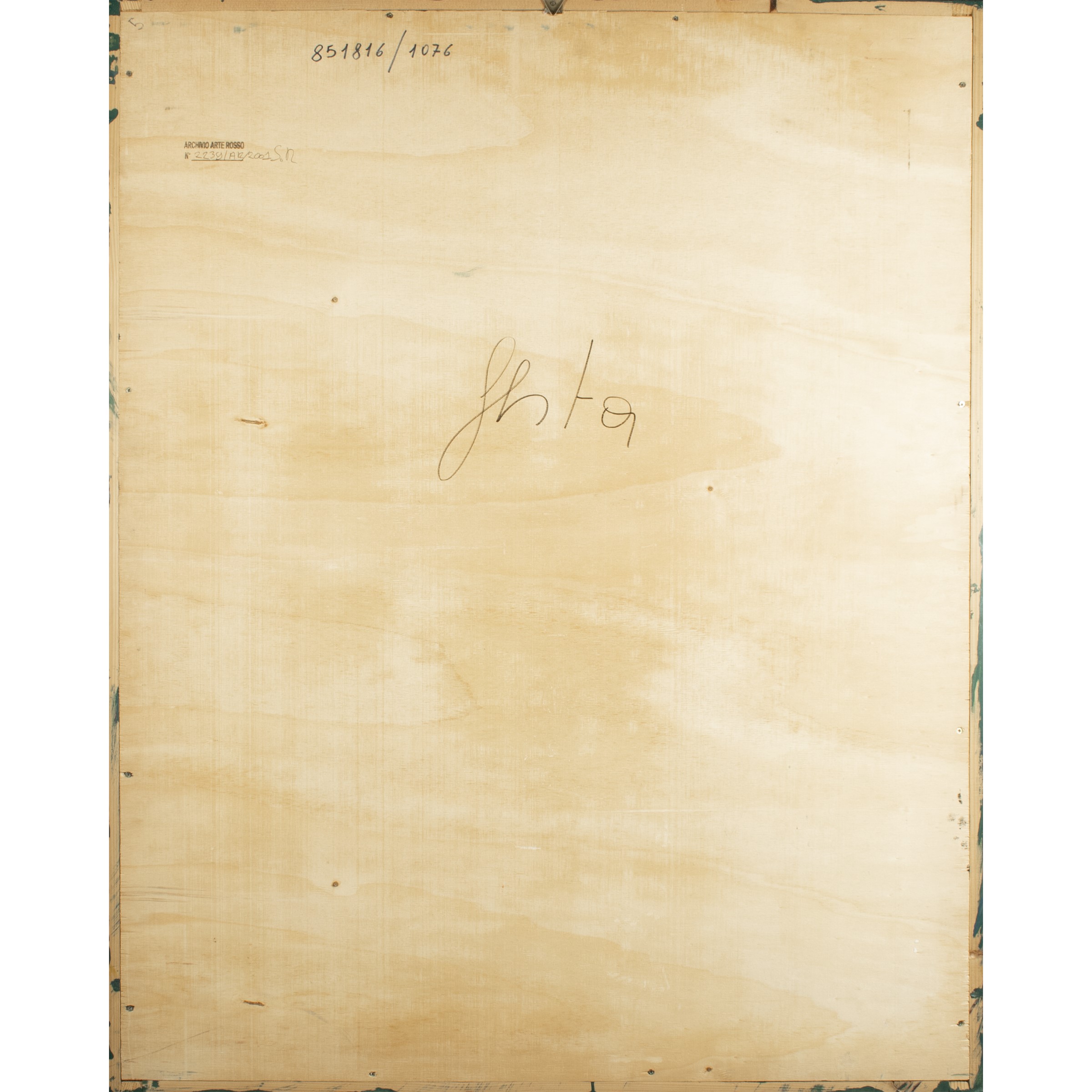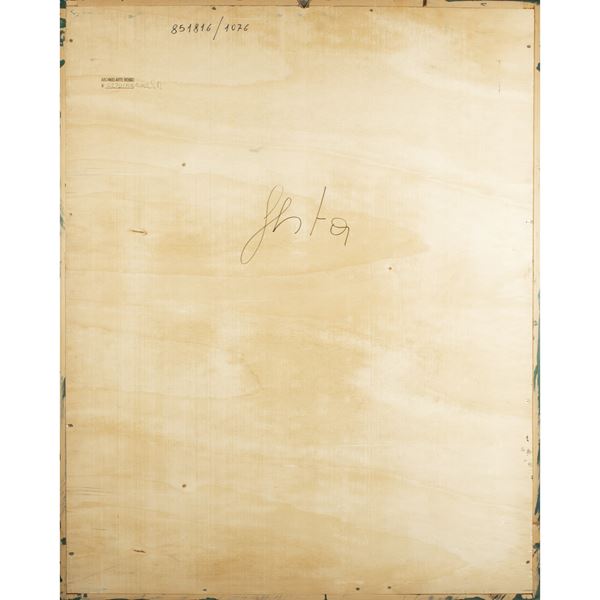 100x80 cm.enamel and acrylic on wood, signed on the back. Archivio Arte Rossostamp on the back Authentication on photograph issued by the Tano Festa di Roma Archive signed by Raffaele Soligo