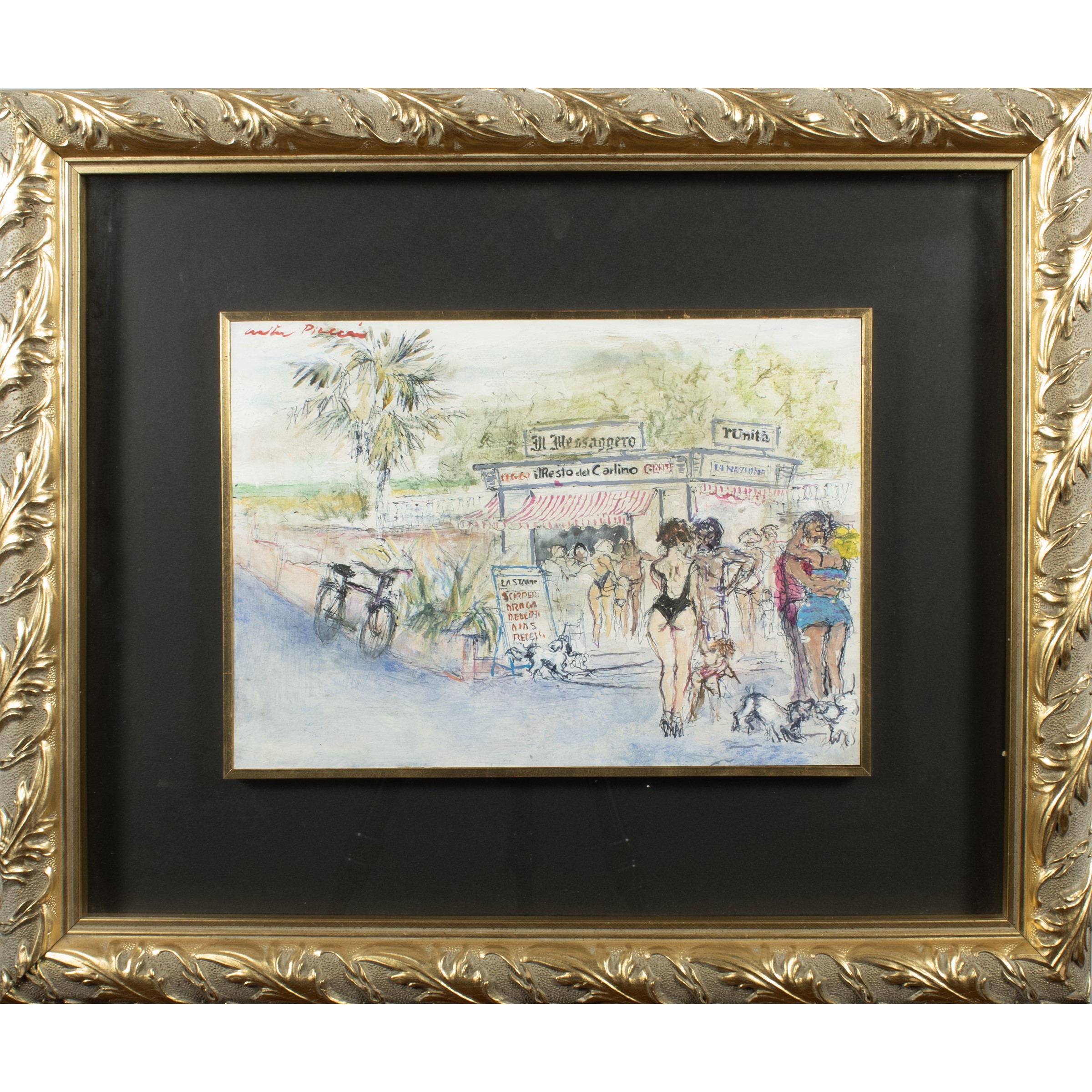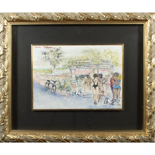 25x35 cm.mixed media on cardboard, signed upper left, signed, dated and titled on the back, within a frame