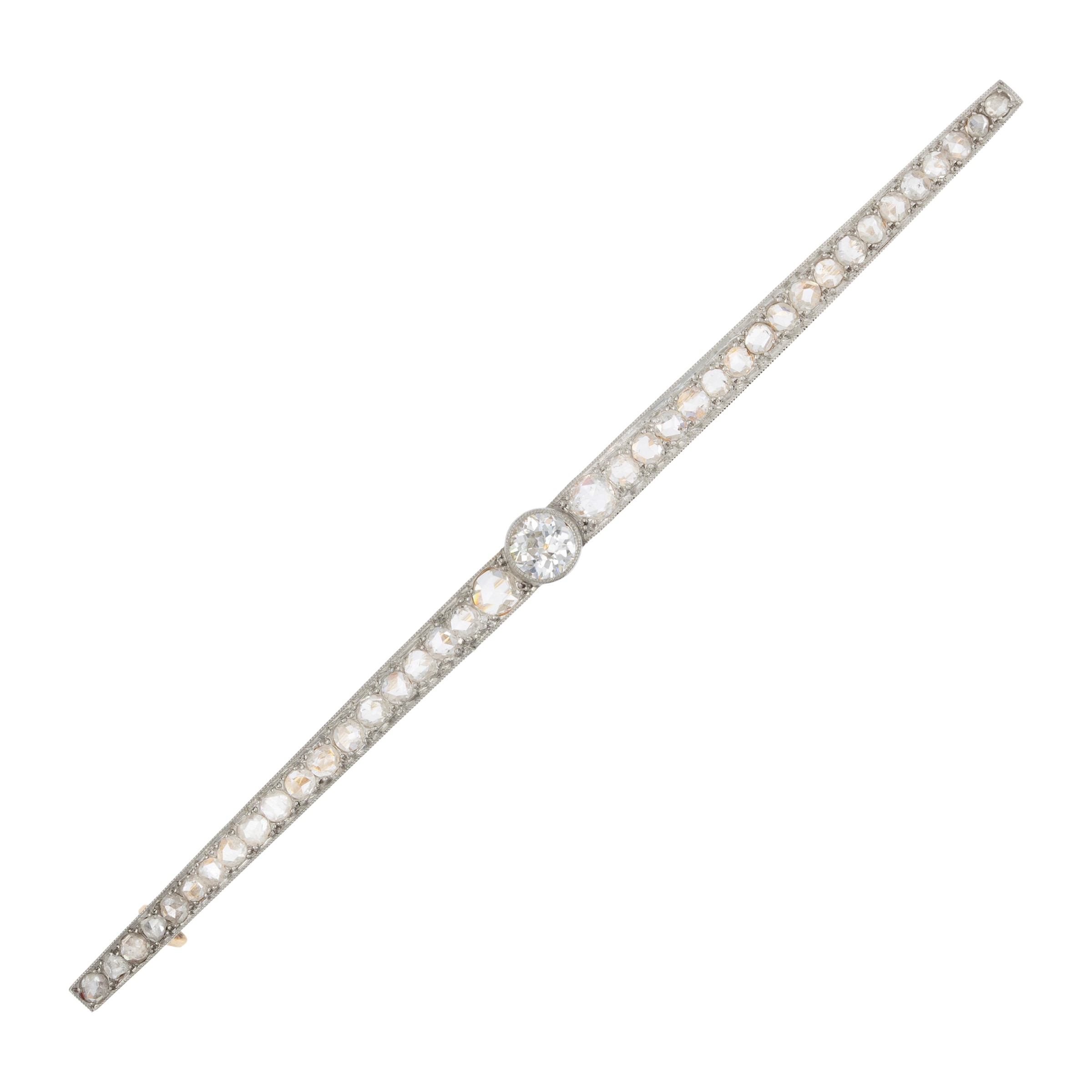 an old mine cut diamond circa 0.50 ct and coroné roses circa 2 ct, length 10 cm.
