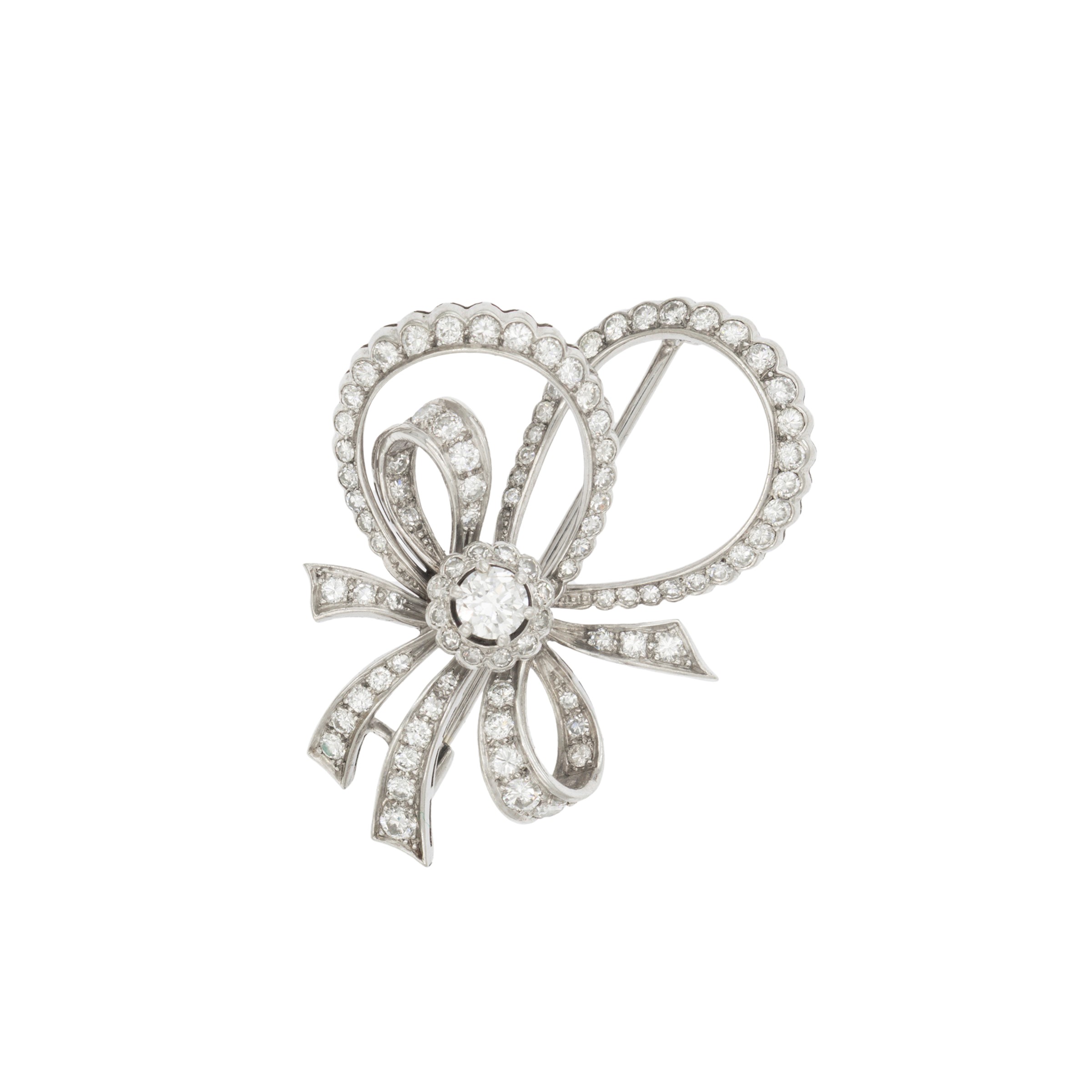 Platinum and brilliant-cut diamonds ribbon shaped brooch
