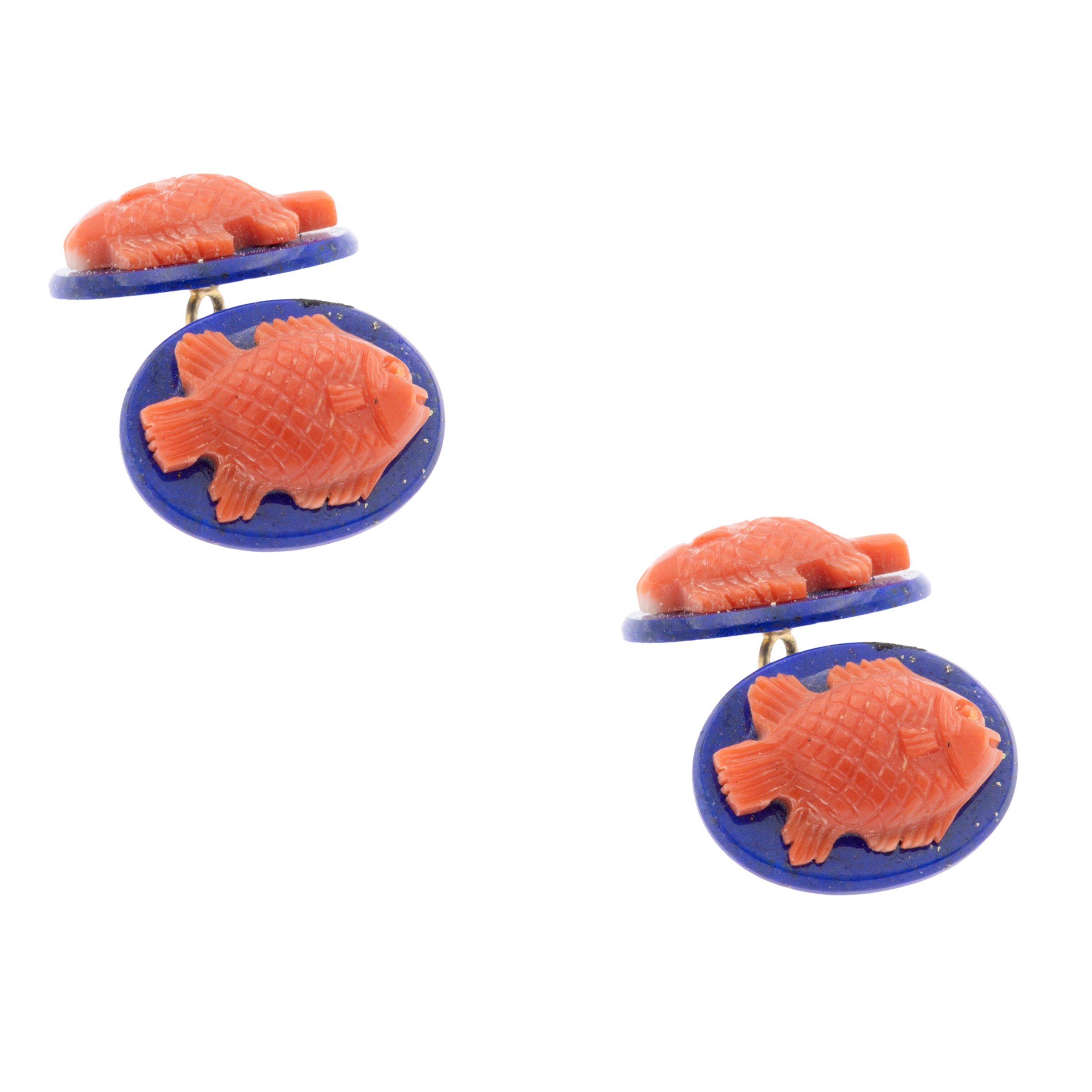18kt yellow gold lapis lazuli and carved coral cufflinks