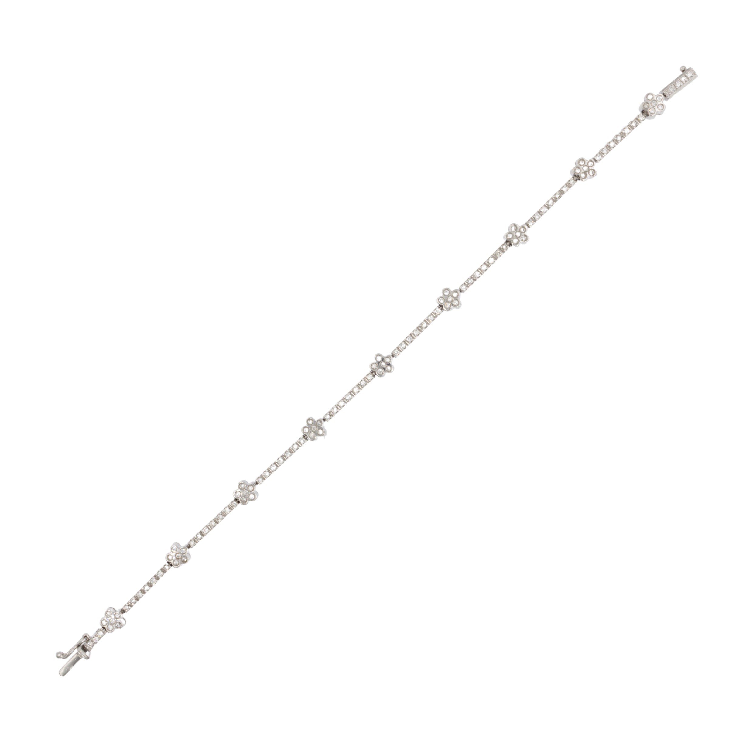 Tennis bracelet alternating with 18kt white gold flowers and diamonds