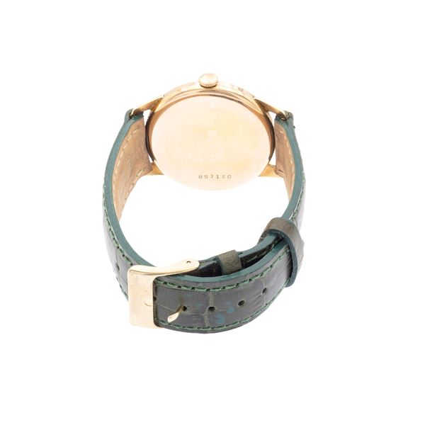 in 18kt rose gold, ref. 857130, 34 mm case. silver dial with indexes and second counter at 6 o'clock, mechanical movement with manual winding, caliber 40t, strap with golden metal buckle, length 24 cm., signed case, dial and movement